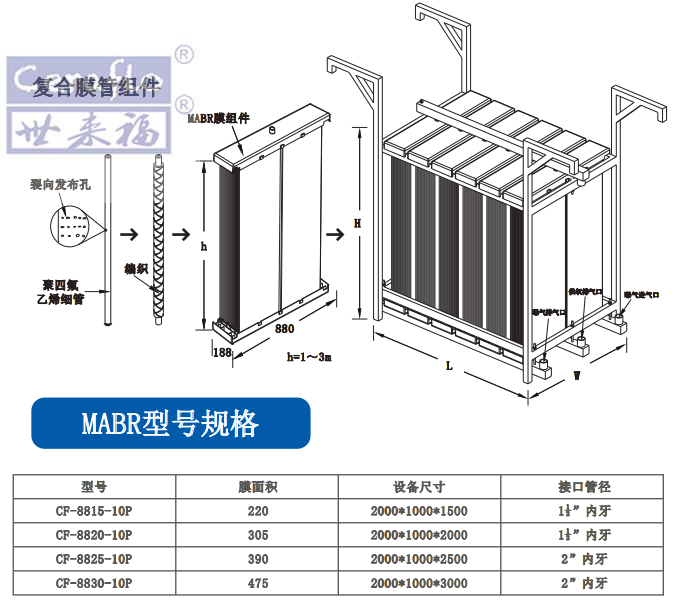 Ceraflo-MABR膜采用中空纖維膜結構,由自主專利技術及生產的微米級PTFE膜絲。讓膜絲內的空氣從微米級的孔隙向外滲透出去,讓水中的溶解氧得到更好的提升且能耗更低。對生物膜的分布以及碳源的利用有著更好的提升效果,大部分的好氧缺氧微生物會富集在膜絲內側。該生物膜反應單元組成的MABR,能夠高效處理污水,可減小反應池的大小,降低建造處理成本和減少用地。
