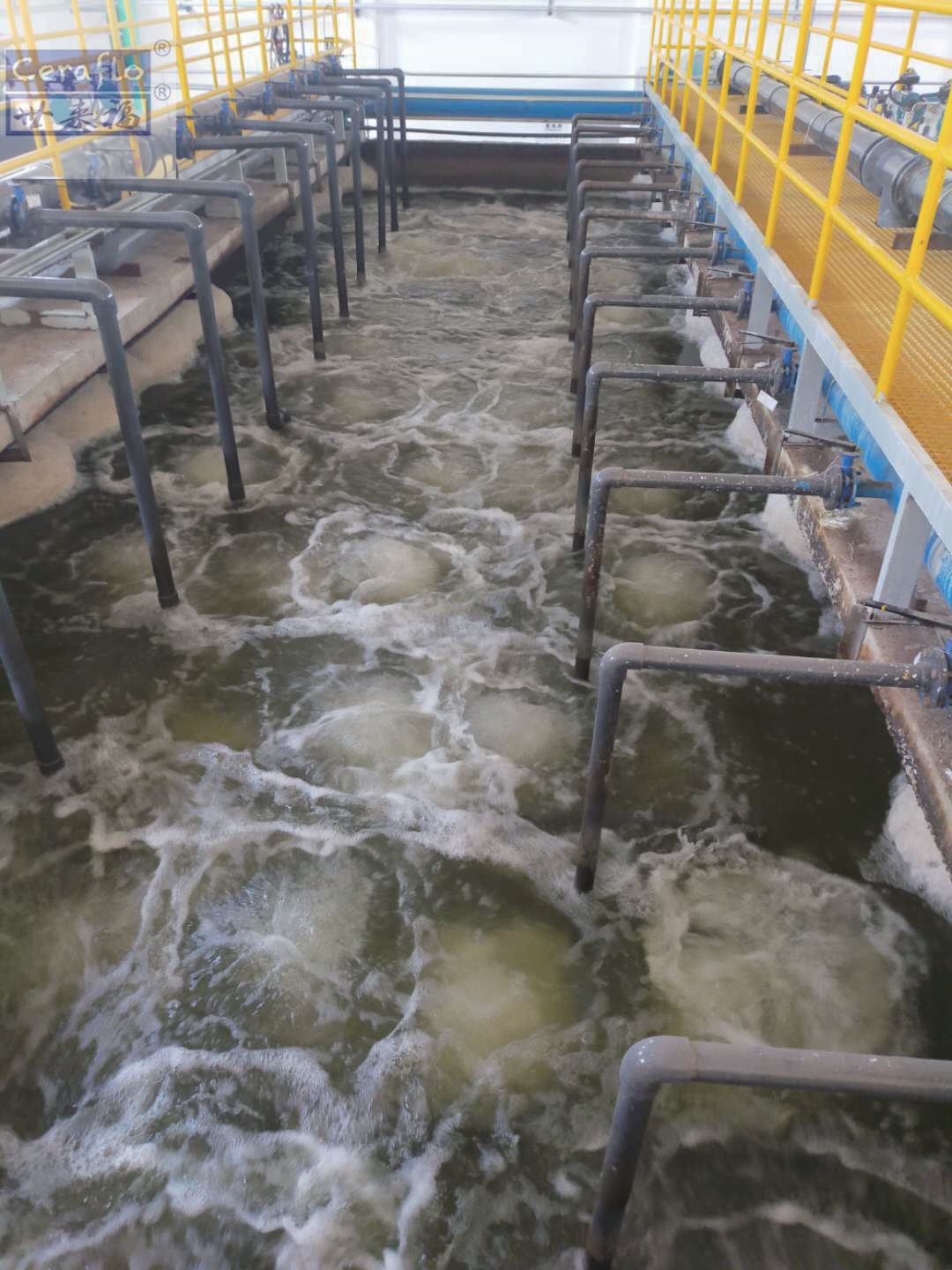陶瓷膜一體化設(shè)備是由進(jìn)水箱、曝氣箱、陶瓷膜組、水箱組成的小型自動(dòng)化水處理設(shè)備,核心部件為Ceraflo陶瓷膜片。該設(shè)備可在各種極端化學(xué)條件下運(yùn)行,pH使用范圍2~12,溫度使用上限50℃,適用于各類(lèi)無(wú)機(jī)廢水。該一體化設(shè)備配備進(jìn)水泵、產(chǎn)水泵、反洗泵、電控箱、電磁閥及液位控制等,全自動(dòng)運(yùn)行,其底部安裝輪子,現(xiàn)場(chǎng)接電、進(jìn)水即可,廣泛用于小型工廠廢水處理。