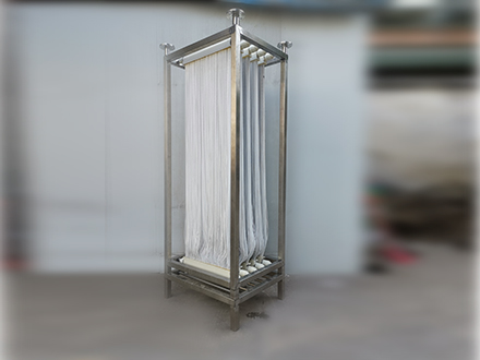 PTFE超親水MBR膜(簾式)實際是一種PTFE中空纖維均質MBR膜,同時具有有機膜的柔性,又有無機膜的強度。與同類中空纖維MBR膜相比,它具有抗拉伸強度大、抗壓強度高,且不易斷絲;也有良好的耐化學腐蝕、耐氧化以及耐光學老化等性能。該產品采用常規的簾式結構,與市場上其它廠商產品可以對接、相互替換。具體樣式如圖所示。